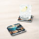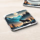 This plastic coaster set is shown with an art print of a wolf in the famous Yellowstone National Park.
