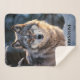 This sherpa throw blanket is shown in a photo print of a wild wolf.