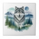 This lovely ceramic tile is shown with a Yellowstone wolf watercolor art print.