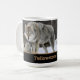 Cette tasse à café en céramique est montrée avec une photo de loups sauvages dans le parc national Yellowstone. Customisez cet objet ou achetez tel quel. Image stock