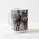 This ceramic coffee mug is shown with a photo print of wild wolves in Yellowstone National Park.