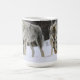 This ceramic coffee mug is shown with a photo print of wild wolves in Yellowstone National Park.
