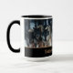 This ceramic coffee mug is shown with a photo print of wild wolves in Yellowstone National Park. Tan accents with Black interior and handle.