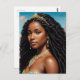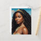 Postcard features a classic oil painting style portrait of Yemaya (also known as Yemaja and Yemoja), orisha of the ocean and other bodies of water. The African deity is depicted here as a beautiful black woman wearing a crown in long natural hair twists, wearing pearl jewellery and a gold tiara signifying her royal standing with the sea in the background on a sunny day. The original artwork exudes melanin mermaidcore and royalcore beauty.