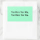Yer Da's Yer Ma, Yer Ma's Yer Da : Stickers, avec lettrage noir sur Arrière - plan bleu.