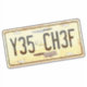Cool sticker of an old weathered and rusty car license number plate with the letters Y35 CH3F, with kitchen knives and a chef hat. Perfect for budding home cooks, restaurant chefs and foodies