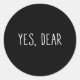 This design showcases a charming phrase, Yes Dear, exuding warmth and affection. A delightful addition to your collection, it encapsulates the spirit of love and compromise.