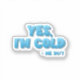 Embrace the chill with this relatable and humourous design! Featuring bold, icy blue text that reads, "Yes, I’m Cold - Me 24/7," this design is perfect for anyone who’s perpetually cold and proud of it. With its clean, minimalist layout and frosty vibe, it’s ideal for cozy sweaters, mugs, stickers, and more. A fun and playful way to show off your chilly personality during the winter season or any time of year.