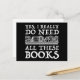 Yes, I Really Do Need All These Books. Funny book lover accessory is a great gift for someone who loves books, reading, libraries, book shops and book stores. Perfect for a librarian, book nerd or bibliophile. Are you a bookaholic? Do you love to read literature and novels in a library or a used book store? Are you an insatiable reader? If you're a geek about books, this funny book quote design is for you!