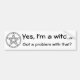 "Yes, I'm a witch. Got a problem with that?" Share your choice proudly with this great bumper sticker.