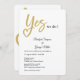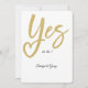 This elegant white and gold wedding design features the phrase “Yes we do!” with the word “Yes” written in a romantic gold script — the sweeping Y cleverly incorporates a heart shape, symbolizing love and unity. The minimal chic layout combines bold modern typography with timeless gold accents, creating a luxurious look perfect for formal events, white tie celebrations, or evening weddings. The names are displayed in graceful calligraphy, adding a touch of personal charm to this sophisticated stationery.