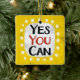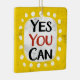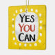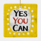 "Yes You Can" is a cute inspirational or motivational quote with a white accent shape surrounded by white textured whimsical dots.