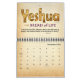 YESHUA, the Name of Jesus, the Messiah Calendar. This monthly Calendar features the Name, “YESHUA” (the Hebrew/Aramaic Name of Jesus). The Calendar includes 12 YESHUA images with Names or Titles and Scriptures associated with each.