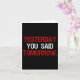 Yesterday You Said Tomorrow Motivation Quote Hard Card