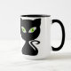 Yeux verts de conception de Coffe de tasse de chat noir. Chats d'amour