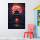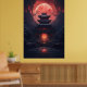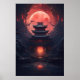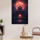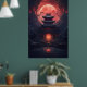 Yin and Yang Bridge and Temple in Cyberpunk Neon Poster