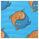 Yin Yang Fish Cartoon of a blue and an orange fish. Seamless pattern.