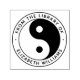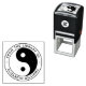 From the library of or this book belongs to rubber stamp with a yin yang symbol in the centre and your custom text and name in a modern sans-serif font.