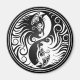 This unique yin yang design features two stylized kittens. The faces of the two cats appear in the large teardrops of the yin yang with long flowing lines tapering up and down to the two tips. This stylish kitten design is a fun and unique example of this symbol for the balance of nature.