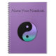 Personalized Yin Yang Symbol Notebook. A lavender to aqua gradient and black yin yang symbol of balance, harmony, wholeness and completion, and the title of your choice. Name your notebook whatever you like and fill it in at the prompt. Customize as desired.