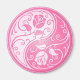This beautiful yin yang design features two stylized tribal roses. Intricate pink swirls decorate both sides of this traditional symbol creating a delicate pattern. The two flowers flow from the bottom of the teardrop on either side with leaves growing from the stems. This unique yin yang makes a stunning and stylish magnet design.