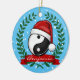 The Yin Yang is a universal symbol for balance and harmony. Show the world your love for universal love and harmony while showing off your Christmas spirit with this shiny round yin yang symbol wearing a Christmas style Santa hat.