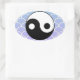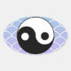 A simple and elegant yin yang symbol, in deep black, on a background of stylized waves, in shades of blue and violet. The yinyang symbol is one that symbolizes Taoism, balance, harmony.
