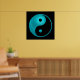 Yin Yang Teal Blue Aqua Spiral Template Black Poster