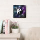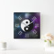 Add a touch of Far East mysticism, astrology, and astronomy to any room with this clock, which features the eight trigram elemental symbols and the yin-yang sign on a starfield painted with polychromatic stardust across the black velvet night! Choose from square or round clock shapes.