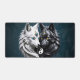 Yin Yang Wolves. L'image montre un loup blanc et un loup noir, leurs têtes se faisant face de près. Le loup blanc a des yeux bleus et un ornement doré avec une perle bleue sur son front, tandis que le loup noir a des yeux jaunes et un ornement similaire. Les loups sont positionnés contre un arrière - plan bleu foncé avec un symbole Yin yang blanc entre eux.