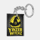 This quirky keychain features a whimsical spray paint inspired print in black and yellow with the bold words Yinzer Witchz.