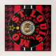 Jigsaw Puzzle black with red hounds-tooth design and with black, white, gold and red concentric-circles design and "ST. LOUIS, MISSOURI CENTER OF THE UNIVERSE" and the Great Seal of Missouri in the centre and "ST. LOUIS, MISSOURI" at the top in script with Y-NOT-M. This design is a shout-out to the big beer town St. Louis, Missouri.