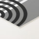 Graphic abstract pattern of black, white, gray concentric lines and circles