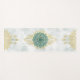 A delicate mandala design is showcased in the centre with intricate green and blue patterns set against a soft, cloudy background. The symmetrical arrangement includes decorative elements above and below the mandala, creating a harmonious balance.