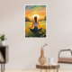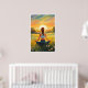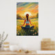 Beautiful original artwork of a lady doing Yoga at sunset in a field.