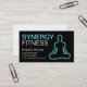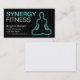 Outline of a woman in a Yoga pose in a glowing blue colour with a solid black background. Text is a modern, crisp font. Great high energy and unique business card for Yoga, Pilates, Aerobics Instructors or for Personal Trainers and Fitness Instructors.