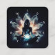 Modern Yoga Fitness Studio / Meditation Instructor / Personal Trainer / Life Coach / Healer / Reiki Master / Massage Therapy 10 Class Pass Loyalty Card Template - A woman is seated in Sukhasana, also known as the Easy Pose, which is a common posture for yoga and meditation. She is surrounded by an ethereal, swirling mist that emits a soft glow. The mist forms an abstract, flower-like shape around her. The mist and the flower symbolize her spiritual energy and connection to nature. The lotus flower is a sacred symbol in many religions and cultures, representing purity, enlightenment, rebirth, and beauty. The lotus flower is also connected to yoga and meditation, as it is often used as a seat for deities or a focal point for concentration. The white lotus flower in the image signifies her inner peace and harmony.