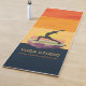 Yoga Fitness Studio / Meditation Instructor / Personal Trainer / Life Coach / Healer / Reiki Master / Massage Therapy Yoga Mats Template - Elegant Yoga Meditation Pose / Crescent moon pose / Crescent Lunge Pose / Half Moon Pose (Ardha Chandrasana) / Surya Namaskar / Anjaneyasana Pose / Sun Salutation / Warrior 1 Yoga Pose / Yoga Moon Salutation / Chandra Namaskar / Silhouette on Fantasy Island Floating in Air at Sunset.