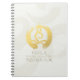 Yoga Studio Meditation Instructor / Life Coach / Healer / Reiki Master / Massage Therapy Notebook Template - Elegant Calligraphy Faux Gold Foil Yoga Meditation Easy Pose / Sukhasana Pose with ZEN Symbol on OM Symbol White Paper Background.