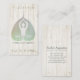 Yoga Studio Meditation Instructor / Life Coach / Healer / Reiki Master / Massage Therapy Loyalty Punch Card Templates - Elegant Green Bodhi Leaf and and Yogi in Easy Seat pose / YOGA Easy Pose / Sukhasana Pose on on White Wood Background.