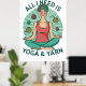 This playful illustration shows a meditating woman surrounded by colorful yarn balls — the perfect blend of mindfulness and crafting joy.
