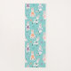 Fun llama yoga mat design featuring our hand-drawn yoga llama characters balancing in different yoga poses. Personalize with your name. The reverse side of the yoga mat features our llama yoga repeat pattern on an aqua background. Text colour and background colours can be changed to suit your preference. Perfect gift for llama lovers and yoga lovers.