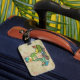 Pleasantly surprised at the quality of the luggage tag. It was exactly as shown and my daughter will be pleased. The address label on the back of the luggage tag was neat and clear.