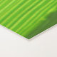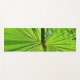 Palm leaf in close-up. Sunlight plays through and around the palm frond. Brilliant greens with a hint of yellow at the edges.