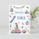 Discover a beautifully designed card that captures the serenity and harmony of yoga! At the center of the design is a meditating woman in a relaxed pose, surrounded by loving details such as a yoga mat, gently blooming flowers, floating hearts, a soothing candle, delicate leaves, and a decorative garland.
