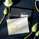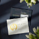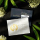 Yoga Studio Meditation Instructor / Life Coach / Healer / Reiki Master / Massage Therapy 10 Class Pass Loyalty Card Template - Elegant Calligraphy Faux Gold Foil Yoga Meditation Easy Pose / Sukhasana Pose with ZEN Symbol on OM Symbol White Paper Background.