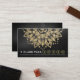 Yoga Meditation Instructor 5 Class Pass Loyalty Card Template - Elegant Gold Foil Mandala Floral and Om Symbol on Dark Black texture Background.
