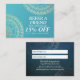 Yoga Fitness Studio / Meditation Instructor / Personal Trainer / Life Coach / Healer / Reiki Master / Massage Therapy Referral Card Appointment Business Card Templates - Modern Chic Faux Gold Foil Floral Mandala Symbols on Crystal Blue / Teal Green Blue Colour Background.