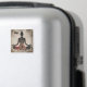 Yogi silhouette on floral taupe background, pink glitter-like specks behind the silhouette.