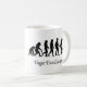Yoga mug showing the humourous evolution of man from an ape to a complex yoga pose. This design is available on any item.